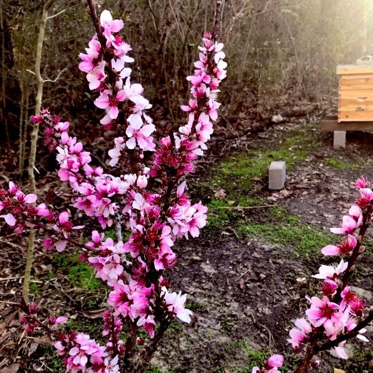 Located deep in the woods a stone’s throw from beautiful Lake Livingston, Texas Honey Pot Apiary provides a natural environment rich with plant life for our bees to thrive. On a gentle hill overlooking a small stream, the bees have everything they need! The apiary is surrounded by wild blackberry thickets, wildflowers and clover. We have also planted an abundance of flowers and fruit trees to further support our bees’ ability to thrive.